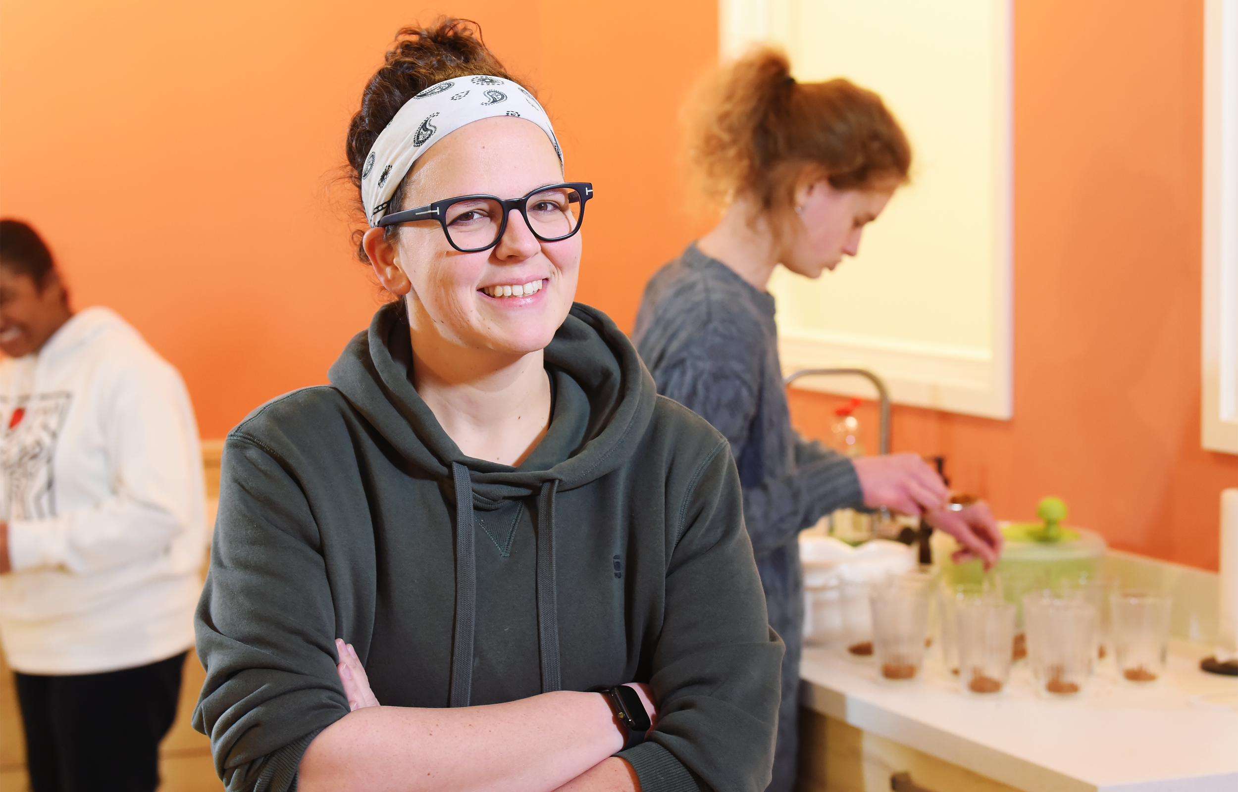 En wat is daarvoor nodig? 'Een ja-mentaliteit', zegt Floor meteen. 'Het is een van de belangrijkste dingen voor onze medewerkers, daarin willen we ze meenemen. We denken eerst ja en dan pas: is het echt realistisch? Als je eerst nee denkt, sta je ver van onze werkelijkheid vandaan. Om de ja-mentaliteit mogelijk te maken, is er altijd een mix van zorgprofessionals, stagiairs en studenten op de groep. De studenten zijn de extra handjes en ogen. Ze krijgen daarvoor een inwerktraject, zodat zij veilig en verantwoord kunnen meewerken. Bij alle groepen is daardoor twee keer zoveel begeleiding aanwezig. Alle studenten en stagiairs betalen wij gewoon uit. We hebben dezelfde budgetten als andere zorgorganisaties, maar doordat onze organisatie heel plat is, komen we goed uit.'